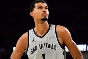文班亚马替补出战,他首节出战05分13秒,4投1中,三分1投0中、没有罚球,拿到2分2篮板,正负值-6。