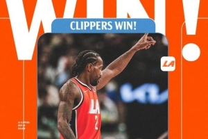赛后快船官方发布赢球海报,莱昂纳德当选封面人物。