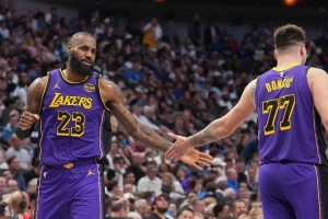今日里夫斯缺阵,湖人首发阵容为:东契奇、斯玛特、詹姆斯、八村塁、艾顿。