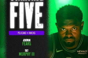 体育资讯12月30日讯 鹈鹕今天在主场迎战尼克斯,赛前首发阵容出炉: