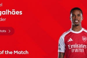本场比赛加布里埃尔为球队先拔头筹,赛后他也当选英超官方球迷票选全场最佳球员。
