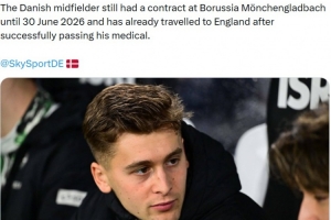 报道称弗劳洛与门兴的合同将在今年6月到期,球员在顺利通过体检后已经前往英格兰。