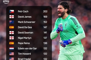 体育资讯1月3日讯 英超第19轮比赛,卫冕冠军利物浦和利兹联互交白卷,阿利松把守的球门实现零封,巴西人成为英超历史第18位至少零封100场的门将。