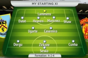 《曼彻斯特晚报》预测曼联对阵伯恩利的预计首发阵容:拉门斯;达洛特、海文、利桑德罗·马丁内斯、卢克·肖;乌加特、卡塞米罗;多尔古、齐尔克泽、库尼亚;舍什科。