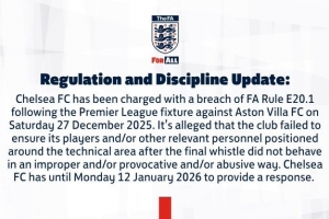 切尔西需在2026年1月12日周一之前就此次指控作出正式回应。