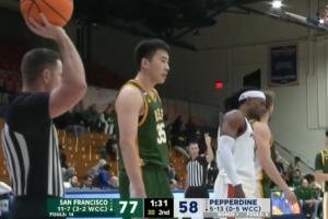 体育资讯01月11日讯 NCAA常规赛,旧金山大学以80-60大胜佩珀代因大学。