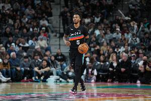 上半场比赛,马刺后卫卡斯尔进攻端不在状态,冲击篮下也终结不了,还出现各种失误,他出战17分33秒,8中1(三分1中0),罚球4中2拿到4分4篮板2助攻,出现4失误。