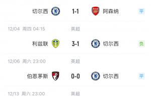 本场过后,切尔西5轮仅胜埃弗顿,打平阿森纳、伯恩茅斯、纽卡,输给利兹联。