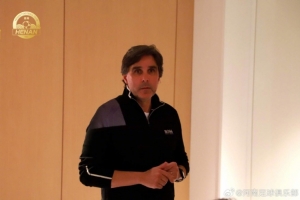 国安德籍经理马永明出席中国金球奖颁奖仪式,并在签名墙书写马字
