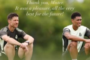 贝林厄姆晒出与阿隆索的合影,并且配文:谢谢您,先生。与您共事非常荣幸,祝您未来一切顺利。