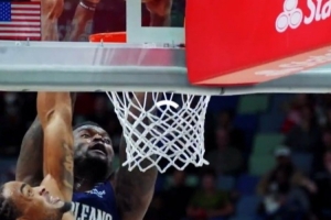 GIF-炸裂!锡安突然跳步双手隔扣克拉克斯顿!
