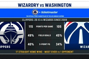 快船主场对阵奇才取得17连胜,是球队主场对阵某个对手的最长连胜。