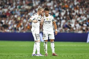 维尼修斯和居莱尔作为被寄予厚望的两位领军人物,都没能站出来。如一些专业人士所预测的那样,马斯坦托诺的情况也类似,除了一个幸运进球之外,他没有展现出可以挑战亚马尔,争夺世界足坛霸主地位的实力。总之就是,完全失控,无人领头。