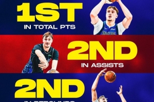 其中总得分第一、总助攻第二、总篮板第二、总抢断第三、总封盖第三。
