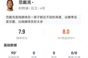 体育资讯12月21日讯 利物浦在本轮英超2-1力克热刺,范戴克本场数据如下: