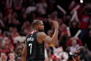 此役,杜兰特出战36分钟,23投7中,三分5投0中,罚球5罚5中,得到19分7篮板3助攻3抢断1盖帽。