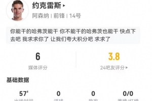 体育资讯1月18日讯 阿森纳在本轮英超对阵诺丁汉森林,约克雷斯本场数据如下: