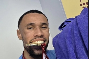 夺冠后叶赫万·迪乌夫社媒晒出与奖牌、毛巾的合照,配文:“都在这里(奖牌和毛巾)。”