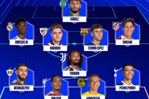 体育资讯1月23日讯 欧足联公布了欧冠的周最佳阵容,维尼修斯、费尔明、范戴克、K·图拉姆入选。
