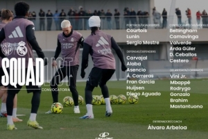 体育资讯1月23日讯 本轮西甲皇马将在客场迎战比利亚雷亚尔,球队官方也公布了本场大名单,迪亚斯、罗德里戈回归,琼阿梅尼累积黄牌停赛。具体如下: