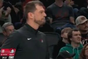 GIF-杨瀚森被换下时与主教练斯普利特击掌!