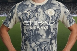 根据著名足球装备网站FootyHeadlines透露,这套曼城与彪马的农历新年球衣设计致敬东方文化中的马年,球衣以米白为底色,正面密布马首图案,构建出极具抽象感的视觉层次。