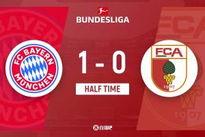 半场结束,拜仁1-0奥格斯堡。
