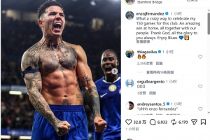 此役是恩佐为切尔西出战的第150场比赛,恩佐社媒晒出庆祝的照片,并写道:“多么疯狂的方式来庆祝我为这家俱乐部出战的第150场比赛啊!在主场与我们的球迷一起取得精彩胜利。”