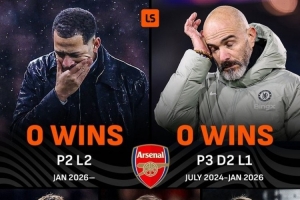 LiveScore统计表明,切尔西最近5任主教练均未能击败阿尔特塔的阿森纳,上一位做到的切尔西主帅是图赫尔。