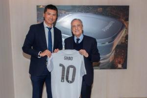 主席弗洛伦蒂诺·佩雷斯先生与邵佳一教练亲切会面并互赠球衣。邵佳一先生参观了皇马体育城,观摩了青年队训练,并与体能教练平图斯、医疗总监尼科·米希奇博士进行了专业交流。