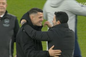 体育资讯02月08日讯 英超第25轮,阿森纳3-0完胜桑德兰。赛后转播镜头拍到,阿森纳旧将、现桑德兰队长扎卡与阿尔特塔亲切热聊。
