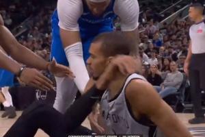 GIF-在场上就是对手!文班亚马拒绝让加福德拉起自己,一定要等队友!