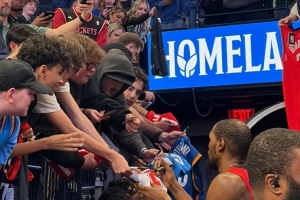 赛后,杜兰特为雷霆主场的球迷们送上签名。