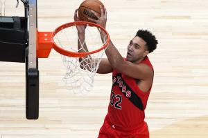 TJD猛龙首秀即拿下两双数据,而TJD在勇士的两年半时间一共才拿到过10次两双。