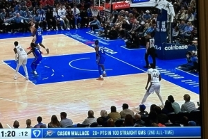 转播方搞出乌龙:卡森·华莱士连续100场比赛得分20+,历史第二长。