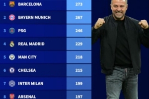体育资讯2月10日讯 《转会市场》统计了弗里克接手巴萨以来的各项赛事进球情况,巴萨力压拜仁居首。