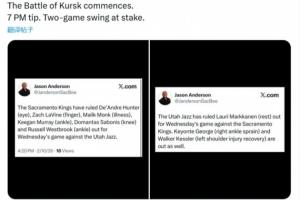 体育资讯02月11日讯 明日NBA常规赛,西部倒数第三的爵士将在主场迎战西部倒数第一的国王。