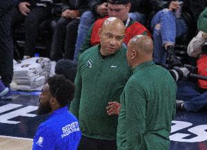 赛前接受采访时,雄鹿替补教练哈姆透露球队主帅道格·里弗斯因参加葬礼而缺席本场比赛,自己将在本场比赛担任雄鹿临时的主教练。。