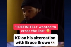 杜兰特表示:“ 今晚我确实是想越界的,但这就是篮球,比赛就在界线之间。没有尊重、没有爱、什么都没有。人们并没有对我展现爱意,他们常常用身体对抗来越界。你懂我的意思吗?这就是比赛的一部分。有些人可以边说话边打球,有些人不行。我作为球员,不得不学会如何边说话边打球,所以我觉得布鲁斯·布朗可能也在学同样的事。”