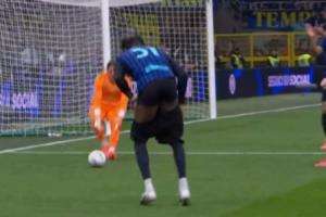 体育资讯02月15日讯 国米vs尤文开场3分钟,比塞克防下伊尔迪兹,这下倒地时比塞克裤子掉了!