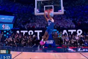 体育资讯02月15日讯 NBA全明星扣篮大赛,预赛第2球前扣篮王杰森·理查德森之子杰斯·理查德森登场,他从三分线外抛球,一次完成拉杆背扣,最终得到45.4分。