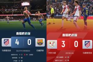 而周中进行的国王杯半决赛首回合中,马竞坐镇主场4-0横扫巴萨。本赛季的早些时候,马竞还曾5-2战胜过皇马。
