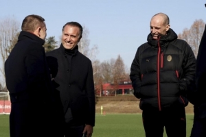 当地时间2月15日,卡尔迪纳莱来到米兰内洛,和全队及教练组进行了会面,陪同的有米兰CEO弗拉尼、米兰顾问伊布、体育总监塔雷。卡尔迪纳莱观看了球队的部分训练,并和主帅阿莱格里进行了长时间交谈,还祝贺了门将迈尼昂成功续约,并对迈尼昂在更衣室内发挥的作用表示高兴。
