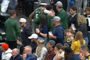 字母哥陪同返回更衣室
