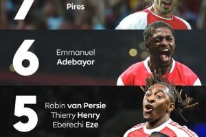 专治热刺!埃泽只踢过两场北伦敦德比,却已经进了5球,在阿森纳历史上,只有两名球员在北伦敦德比的进球比他多↓