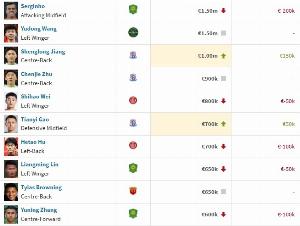 国足球员身价前十↓
