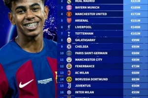 体育资讯2月28日讯 德国转会市场盘点了各大俱乐部2025年球衣销售收入情况,巴萨以2.77亿欧元居首,皇马以2.31亿欧元位居次席,足坛仅两家西甲豪门球衣销售收入超两亿欧。