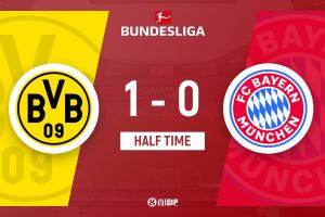 体育资讯3月1日讯 北京时间3月1日01:30,德甲第24轮多特迎战拜仁的比赛在伊杜纳信号公园球场进行,上半场施洛特贝克放铲染黄,随后斯文松助攻施洛特贝克头球首开记录,埃姆雷詹伤退,半场结束,多特1-0拜仁。