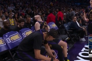 无大碍!里夫斯切球扭到手腕 湖人叫停调整后继续作战