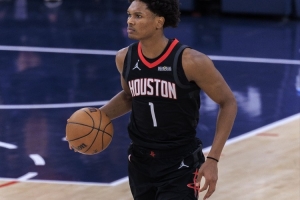 首节比拼,阿门·汤普森出场10分21秒,5投4中,罚球2中1,拿到9分3篮板2助攻1抢断,正负值+8。